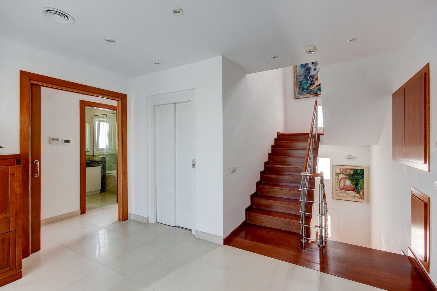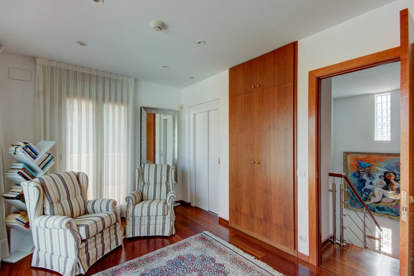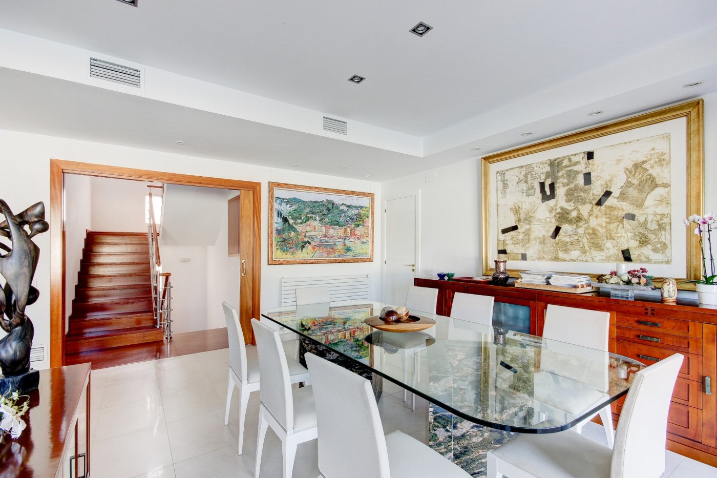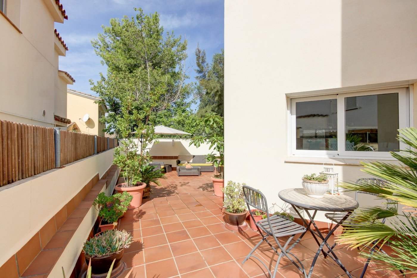 Nous vous présentons cette splendide et élégante maison dans une zone privilégiée de Sant Pere de Ribes.~ Il comporte trois étages et un demi-sous-sol avec un ascenseur entre tous les étages.~ Rez-de-chaussée : nous sommes accueillis par un hall, qui distribue l’espace vers le salon-salle à manger, la cuisine, une chambre, une salle de bain complète et une autre chambre en suite, qui peut être utilisée comme pièce de service. Le salon-salle à manger est spacieux et dispose de trois grandes fenêtres donnant sur le jardin et d’une cheminée vitrée. La cuisine est indépendante et équipée d’une table et de deux fenêtres qui apportent de la lumière. La partie extérieure qui entoure la quasi-totalité de la maison est constituée d’une partie jardin en gazon naturel avec irrigation automatique et d’une piscine dotée d’un système automatique de nettoyage et de contrôle du ph, et l’autre partie extérieure est une terrasse-porche.~ L’accès au premier étage se fait par un escalier en bois à l’allure maritime. Ici, nous trouvons trois chambres extérieures avec des vues agréables, dont une très spacieuse, en suite et actuellement utilisée comme bureau. Deux chambres partagent une salle de bains et ont accès à une terrasse.~ Le dernier étage nous surprend avec un mini appartement : hall-salon, puis un dressing et la chambre principale avec salle de bain avec douche séparée et baignoire avec hydromassage. Les chambres ont accès à une terrasse généreuse qui entoure presque cet étage, où l’on peut se détendre entouré de merveilleuses vues ouvertes aux quatre vents. Des escaliers extérieurs donnent accès à une autre terrasse supérieure où se trouvent certains services, comme la climatisation et les panneaux solaires. ~ Au demi-sous-sol se trouve le garage, avec de la place pour trois voitures, une salle polyvalente (actuellement une petite salle de sport), une salle de bain complète, une cave à vin climatisée, des locaux d’entretien pour la piscine et des fournitures pour la maison.~ Toutes les pièces ont des armoires encastrées, des stores électriques et l’installation électrique est sectorisée.~ Cette maison se caractérise par son design agréable, la majestueuse façade en marbre travertin, combinée au style confortable et accueillant de la construction, et par le confort : vous pourriez emménager demain grâce au soin apporté à l’entretien et aux détails liés aux fournitures.~ L’emplacement est excellent, à côté de la route d’accès aux autoroutes et de l’arrêt de bus pour Sitges et Vilanova.~